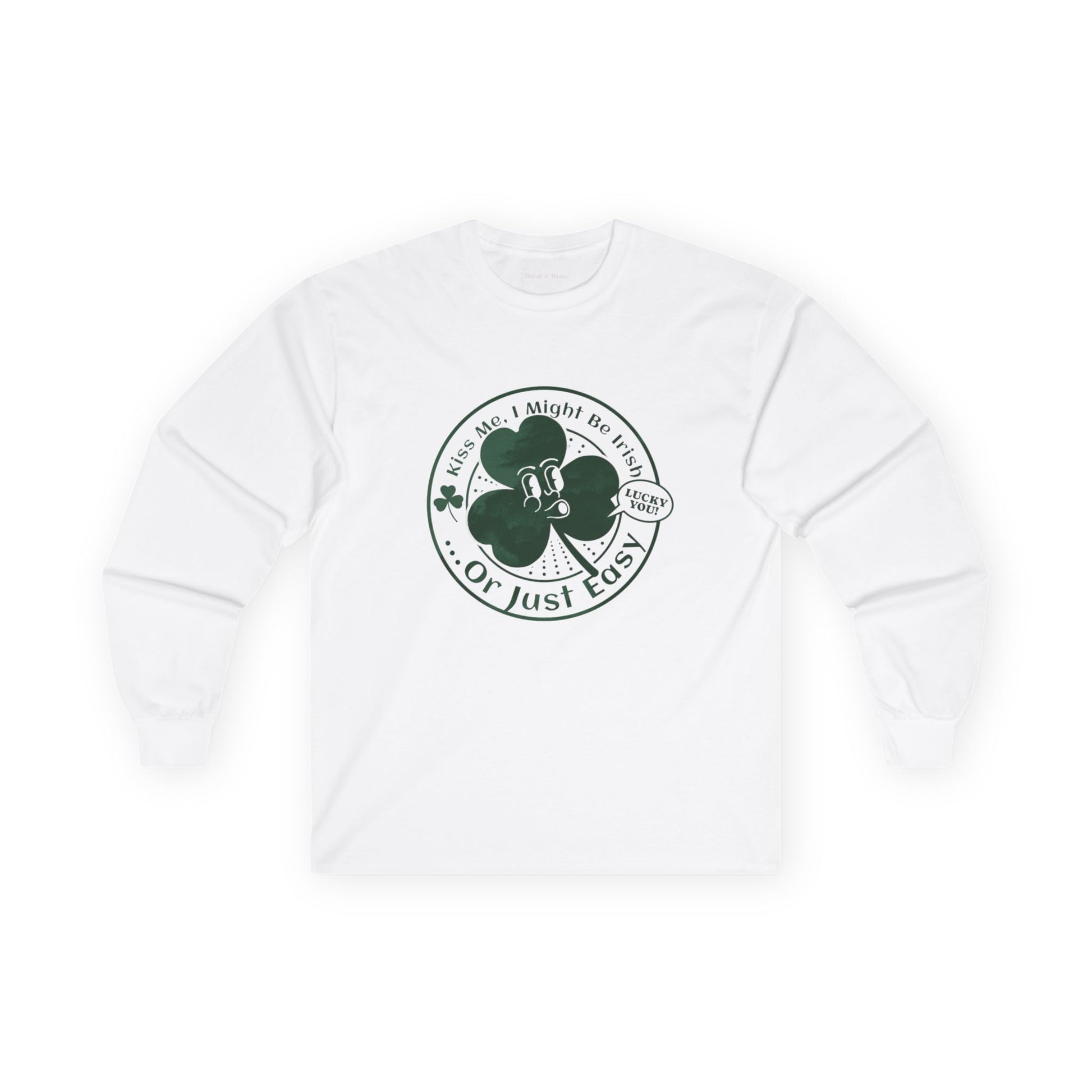 Lucky Charm Long Sleeve Tee - "Kiss Me, I Might Be Irish" for St. Patrick's Day